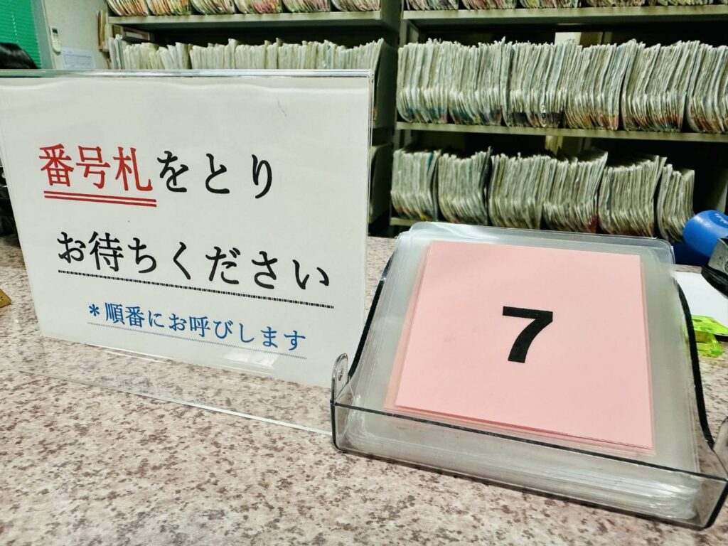 ①窓口で番号札を取り、待合で座ってお待ちください🛋️