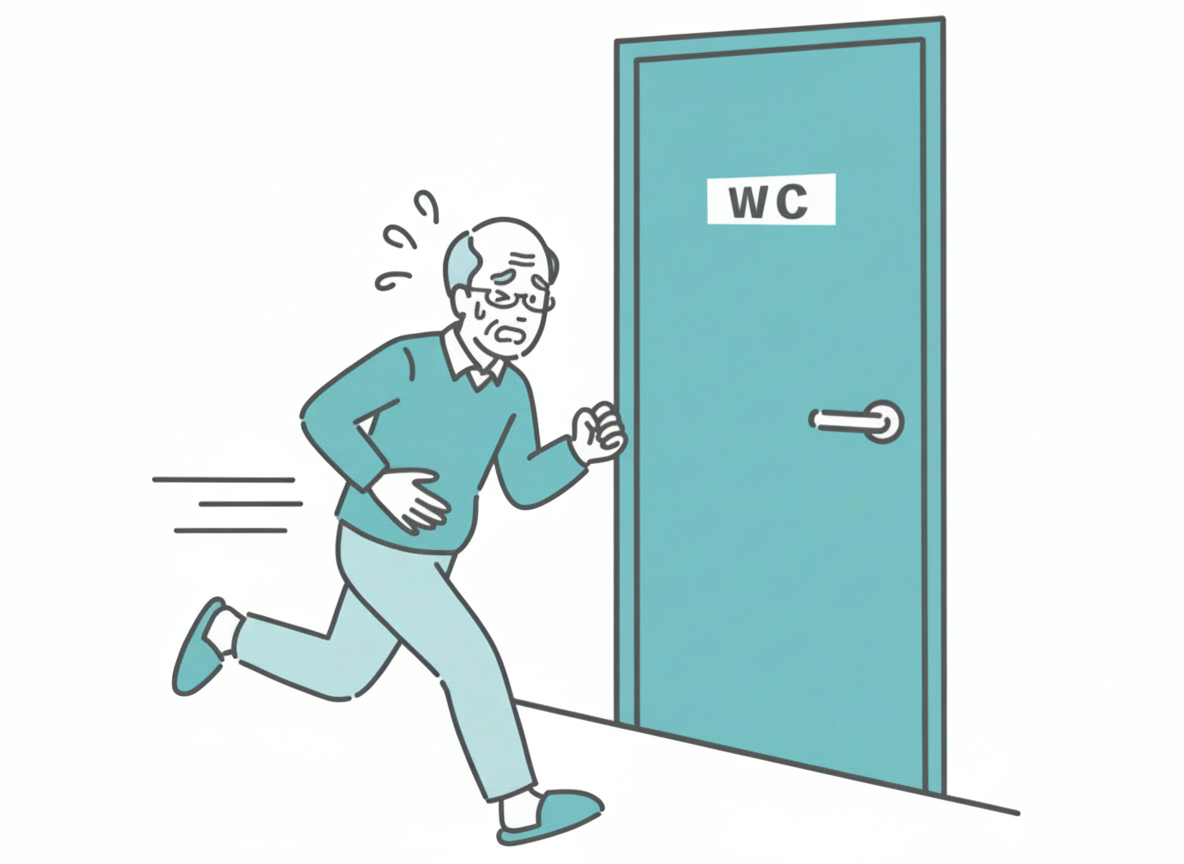 膀胱の炎症(膀胱炎)、膀胱内の石(膀胱結石)など、膀胱に炎症があったり、膀胱が刺激を受けている状況でおこります。また、頻度が高く特に有名な病気がありまして、それは「過活動膀胱」です。脳やせき髄の障害、自律神経のバランス不良、膀胱の血流低下などが原因となって膀胱が過敏な状態となり、結果として頻尿をきたすのですが、突然強い尿意を感じて漏らしそうになることもしばしばあります。この病気は年配の女性に多いとされ、人口の5%から20%が過活動膀胱の状態だとか。