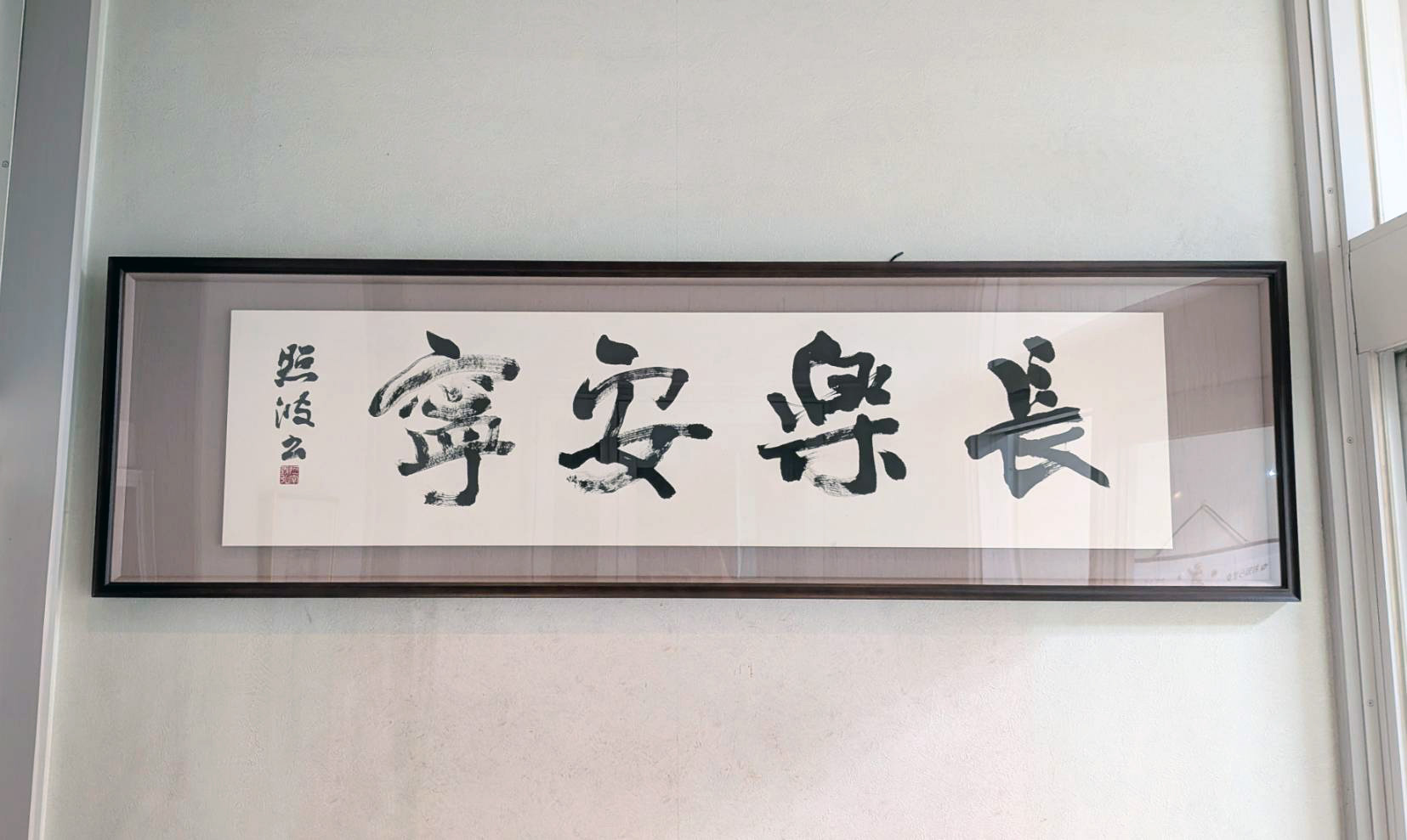 当クリニックを受診された方はご存知だと思います。現在、玄関正面の壁に「長楽安寧」(ちょうらくあんねい)と書かれた額を飾っています。